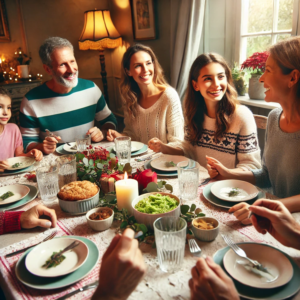 명절은 가족과 대화하며 음식을 즐기는 시간입니다. 음식을 천천히 먹으면 과식을 예방할 수 있습니다.