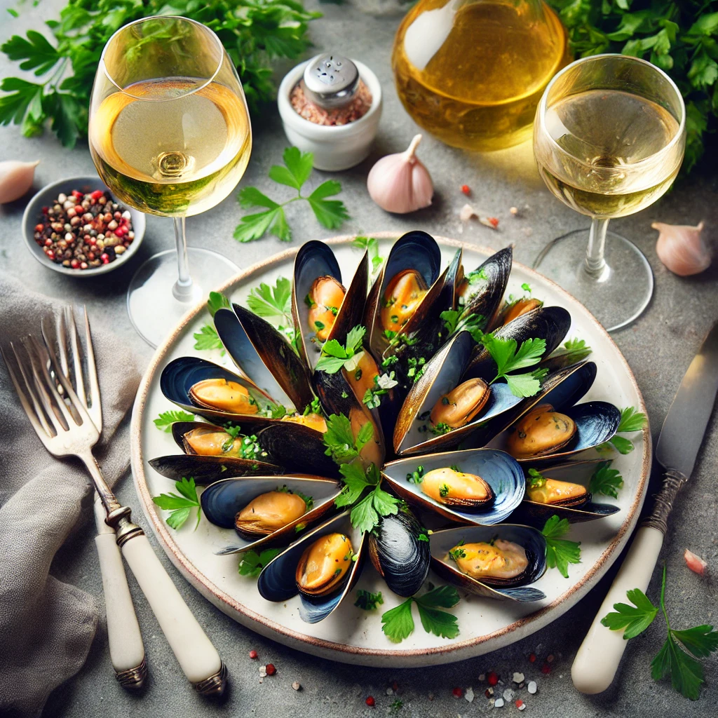 버터와 마늘을 넣고 찜기에 찐 홍합은 간단하면서도 고급스러운 맛을 자랑합니다. 화이트 와인 한 잔과 곁들여 즐기면 더할 나위 없습니다.